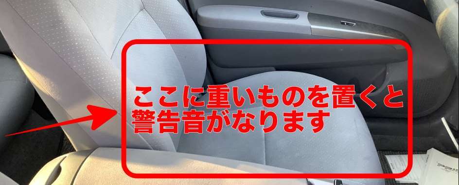 注意したいのが、助手席に何か物を置いている場合です。助手席に物を置いている場合、ある一定の重さを感知した際シートベルトが装着していないとやはり警告音が鳴ります。