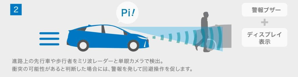 そして最近のプリウスは衝突の注意喚起の時と衝突の危険性がある時にもピーと音を鳴らして警告してくれます。具体的には、
